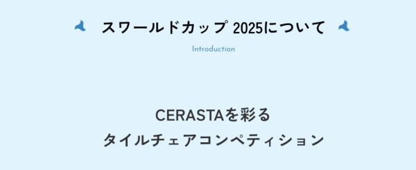 私が今回、タイルの祭典cerasta(セラスタ)に参加することになったのは「スワールドカップ2025」というタイルチェアコンペティションにエントリーしたからです。