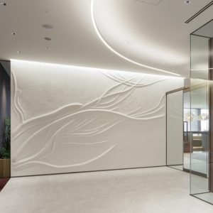 プラスタル塗り版築 - オフィス壁面に施工 凹凸を付けた仕上げ